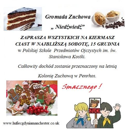 Kiermasz ciast w sobotę 15 grudnia Opublikowano 13 grudnia 201220 grudnia 2012 przez A. Makojnik Przekazujemy ogłoszenie Gromady Zuchowej: Aktualizacja: Gromada Zuchowa zebrała £111, za co serdecznie dziękuje!