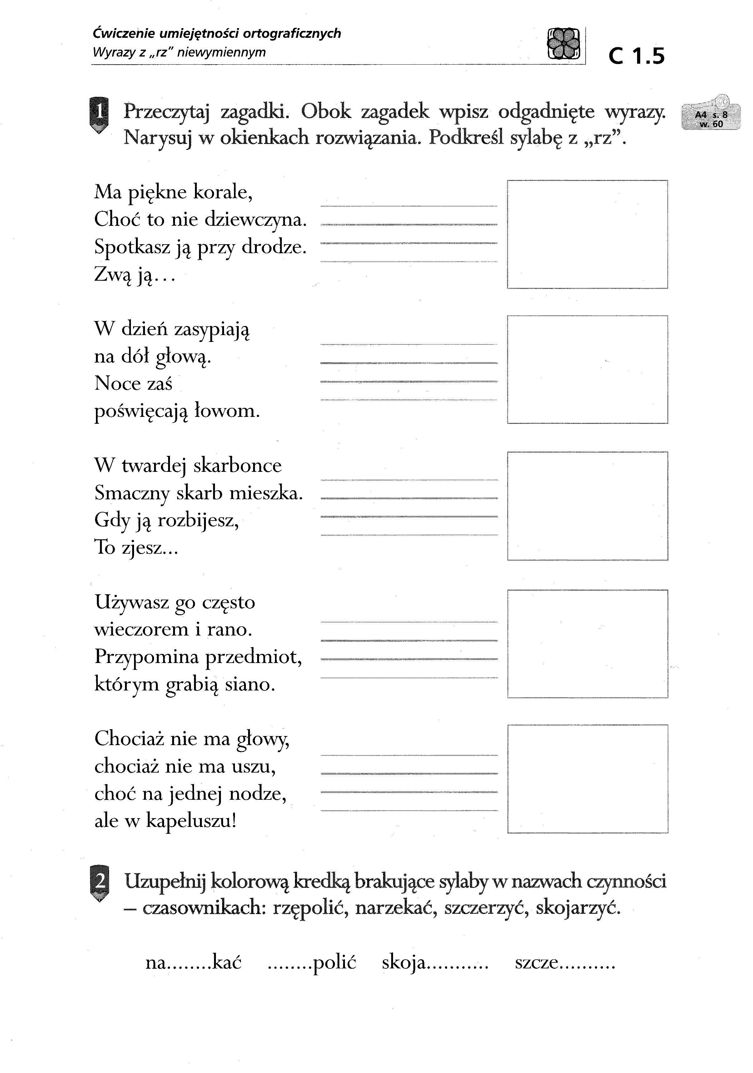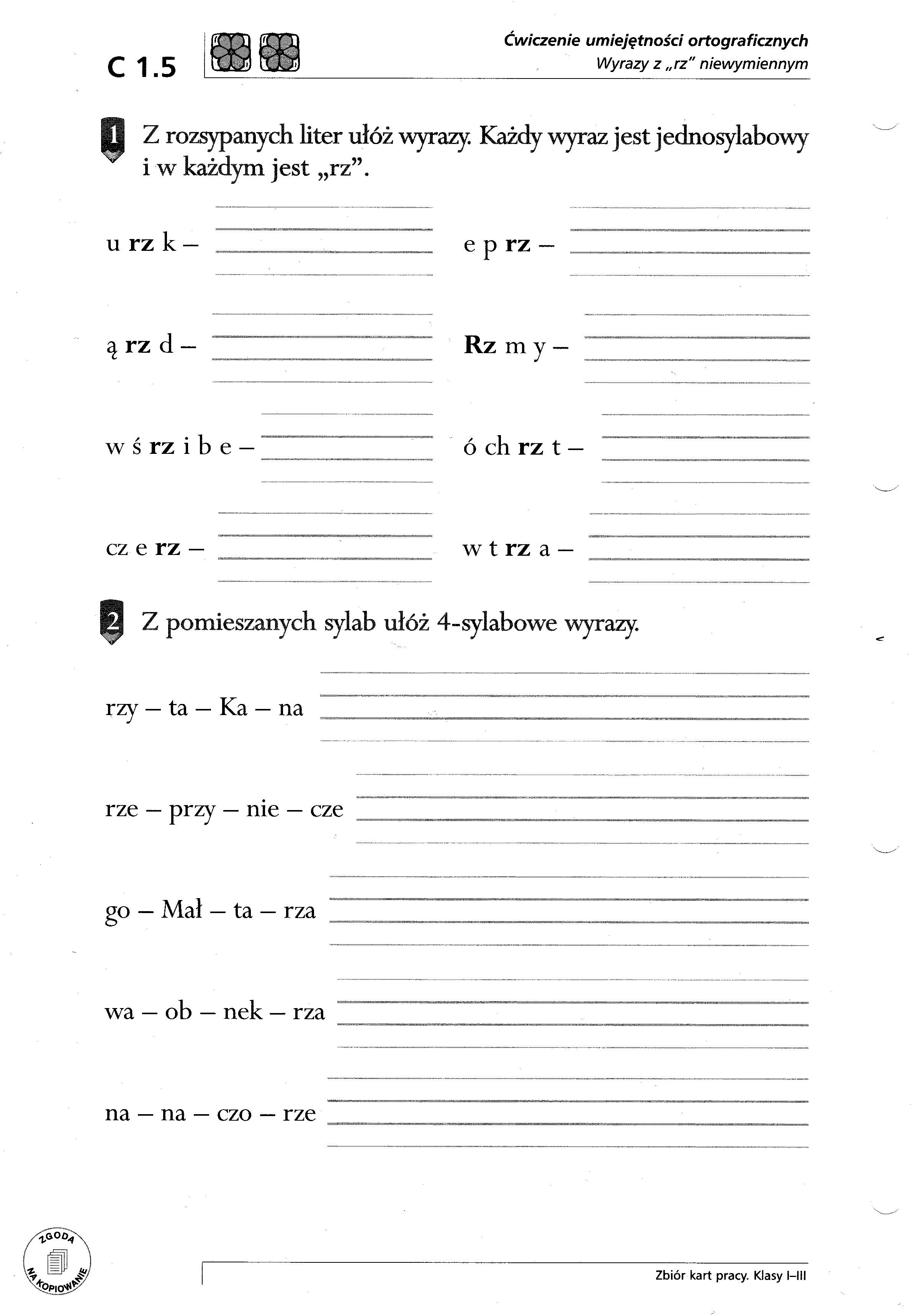 Temat: Wyrazy z „rz” w zakończeniach -arz i -erz oraz „rz” niewymienne.