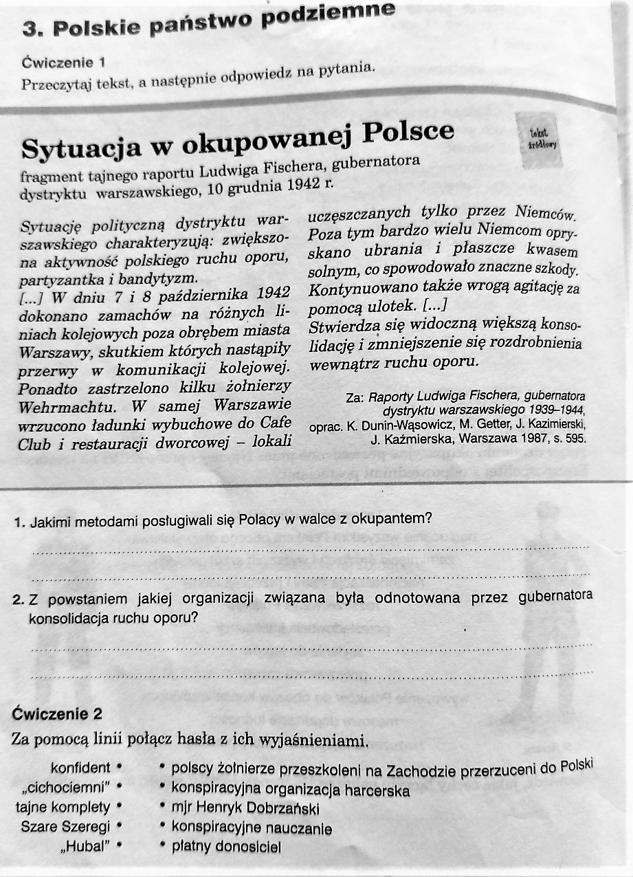 Proszć wydrukować i odpowiedzieć na pytania, następnie wkleić do zeszytu. Trudność tekstów do wyboru.